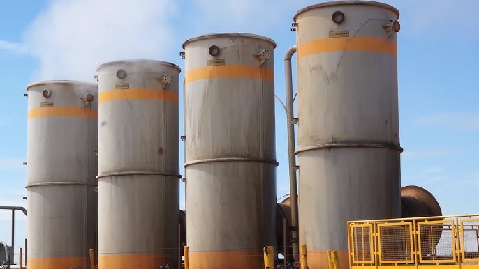 Torre filtradora e desulfurizadora de biogás de porte industrial, projetada para remoção eficiente de sulfeto de hidrogênio (H2S) e umidade, utilizando meio filtrante à base de óxido de ferro, com construção robusta e adequada para operação contínua em plantas de biogás.