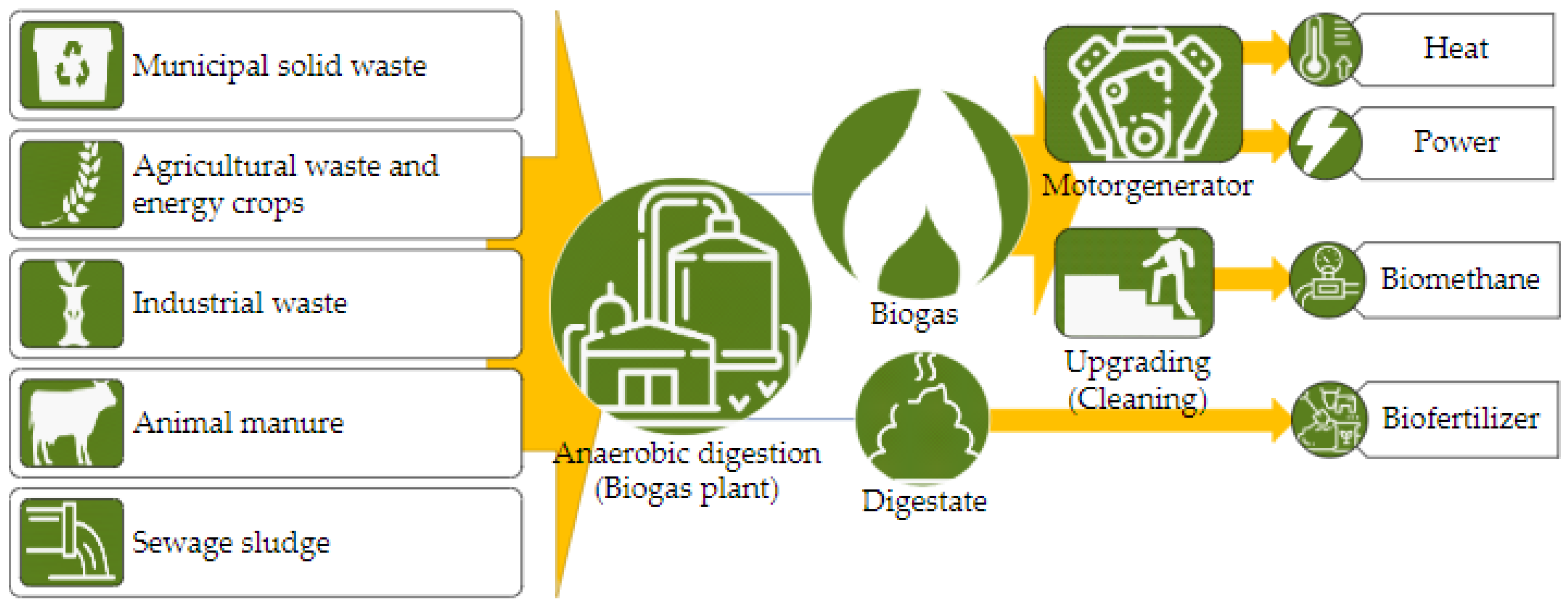O biogás pode ser utilizado para gerar eletricidade, produzir calor em caldeiras, substituir o gás de cozinha (GLP) após tratamento, ou ser refinado para se tornar biometano, que pode ser usado como combustível para veículos.
