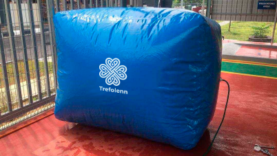 Sacos industriais de armazenamento de biogás fabricados em material plástico reforçado RM-PVC (lama vermelha), indicados para plantas de biogás de médio e grande porte, com elevada resistência à radiação solar, agentes químicos e envelhecimento.