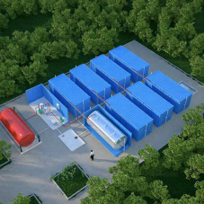Sistema industrial de biodigestão anaeróbia em múltiplos estágios, totalmente integrado em contêiner, projetado para operação contínua com controle térmico avançado (mesofílico ou termofílico), alta eficiência energética e máxima segurança ambiental.