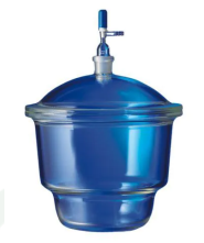 Dessecador a vácuo PYREX® com capacidade aproximada de 10,5L, equipado com mangas externas cônicas padrão 24/29 e torneira em PTFE integrada. Projetado para manipulação segura sob vácuo, elimina a necessidade de graxa de vedação e oferece maior praticidade e confiabilidade em processos laboratoriais.