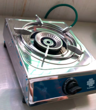 Fogão a biogás de queimador único, projetado para uso doméstico e institucional, permitindo o aproveitamento direto do biogás gerado em biodigestores, com chama estável e alto rendimento energético.
